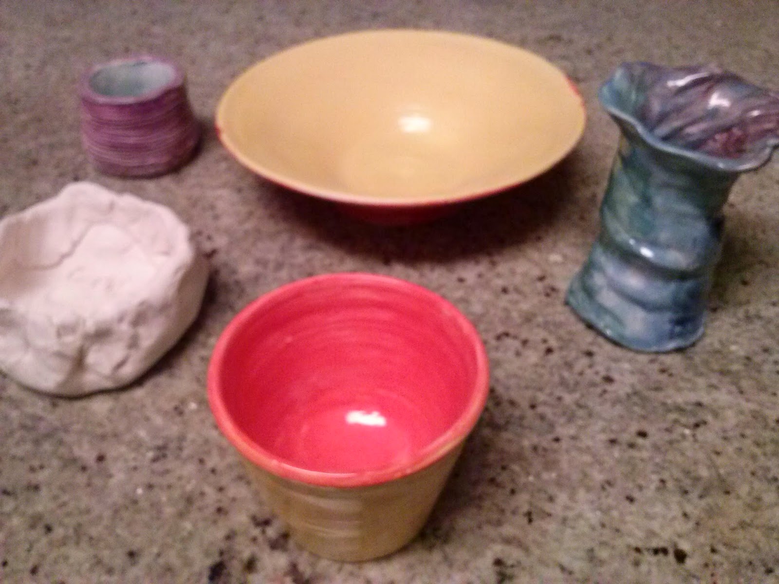 I've never tried anything like this before - and it was so cool! It's much easier to do than you'd guess. Basically, you use a miniature pizza cutter thingamajiggy to score where you want to cut. Then you use some kind of pliers more or less to snap off the piece you're working with. You can add layers, paint them, add more layers, and use different colours, shapes and sizes. These four pictures are from Aug. 17th. You can see my six pieces (pendants) in their pre-kiln stage.